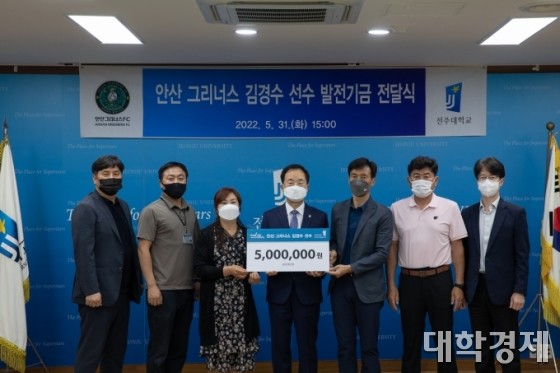 ±è»óö ¾¾´Â "ÀüÁÖ´ë Ã౸ºÎ ¼±¼öµéÀÌ °æÁ¦Àû °ÆÁ¤À» ´ú°í ¿îµ¿¿¡ Àü³äÇÏ±æ ¹Ù¶ó´Â ¸¶À½À¸·Î ¹ßÀü±â±Ý ±âºÎ¸¦ °áÁ¤Çß´Ù"°í ÀüÇß´Ù.